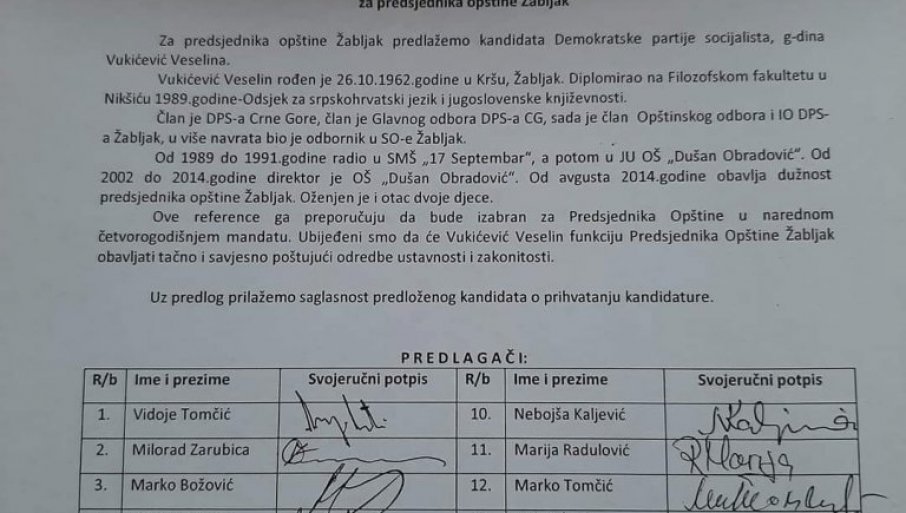 ДПС и СД мимо закона, у техничком мандату, без одржаних локалних избора, изабрали Вукићевића за председника Општине Жабљак у наредне четри године. Постоји бојазан да сличан сценарио не припремају и за остале црногорске општине.