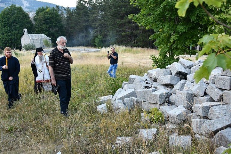 - Било их је веома много. Не можемо их све набројати. Али, морамо поменути митрополита Данила Дајковића и најугледније професоре, књижевнике, уметнике, мислиоце који су стали на страну цркве на Ловћену и аманета Његошевог. Сабрали смо се на овом разореном камењу Ловћенске капеле да прославимо њеног небеског покровитеља Светога Петра Цетињскога, да његову светост призовемо да идемо правим Божјим путем. Али да призовемо и дух великог Петра Другог Петровића Ловћенског Тајновидца, духовног учитеља, не само Црне Горе него и целог српства и целог словенства, рекао је митрополит Јоаникије, додајући да је разарање Његошеве капеле догађај који потреса нашу савест и да смо се стога сетили свих несрећних околности које су довеле до рушења Ловћенске капеле.