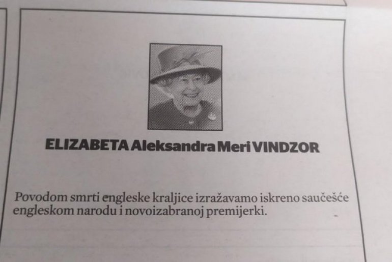 На Фејсбук страници „Подгорички времеплов”, осванула је читуља са речима: „Поводом смрти енглеске краљице изражавамо искрено саучешће енглеском народу и новоизабраној премијерки.