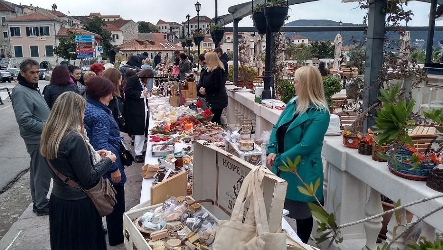 Домаћи сапун на природној бази, са мирисним биљкама са Орјена, палминим, маслиновим и кокосовим уљем, без хемије представила је Јелена Косић, чланица пројекта Ековил, удружења пољопривредника херцегновског залеђа.