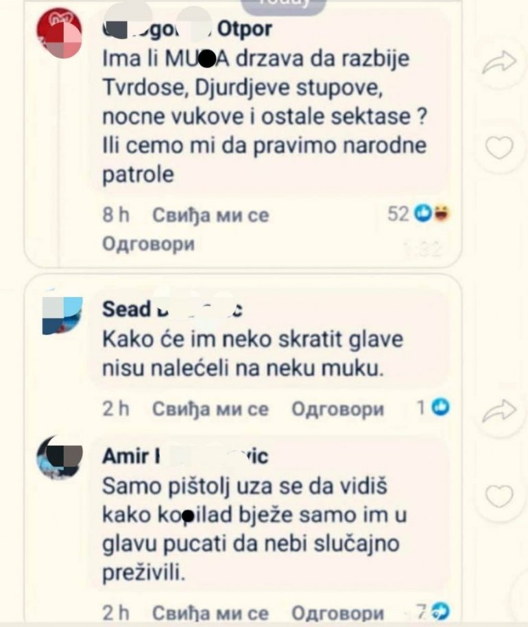 Само неколико дана касније, такође на Фејсбуку, упућене су језиве претње али овога пута према члановима православних братстава, али и других организација блиских Српској православној цркви.