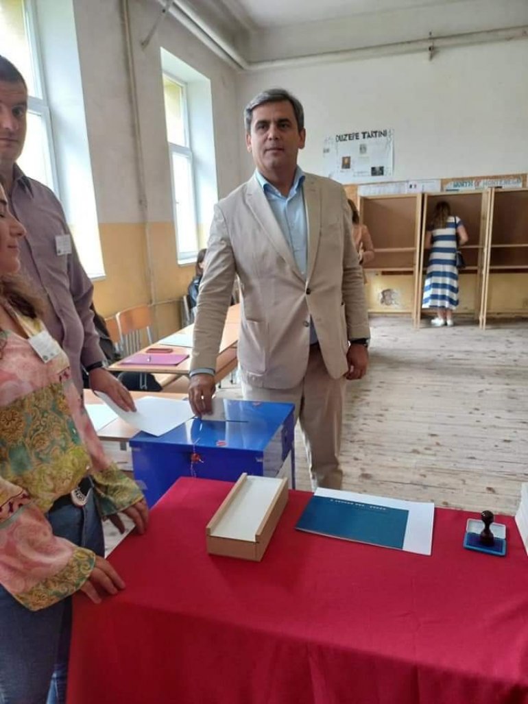 Лидер Покрета за промјене Небојша Медојевић своје бирачко право искористио је на бирачком месту бр. 11-А у месној заједници 13. јул у Подгорици.