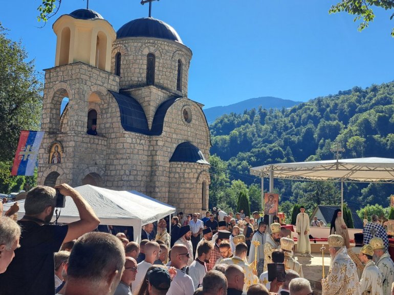 ПАТРИЈАРХ Српске православне цркве Порфирије, стигао је данас у Велику, село испод Чакора, где поводом 80 година од страдања Светих мученика величких и горњеполимских, са митрополитом црногорско-приморским Јоаникијем, епископом будимљанско-никшићким Методијем и више архијереја СПЦ служи свету архијерејску литургију у Цркви Светих мученика Кирика и Јулите у Велици.