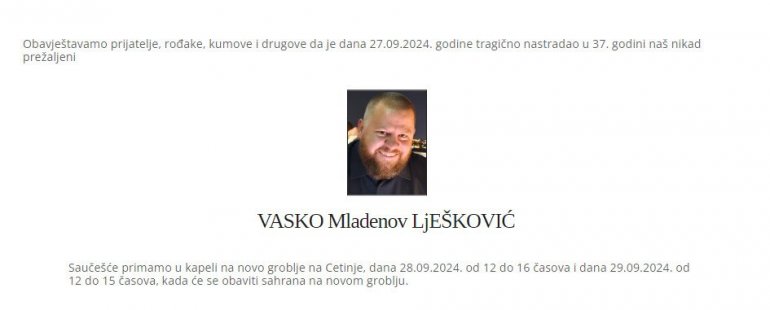 Иначе, породица је објавила и детаље сахране Љешковића где се наводи да ће бити покопан сутра на Цетињу.