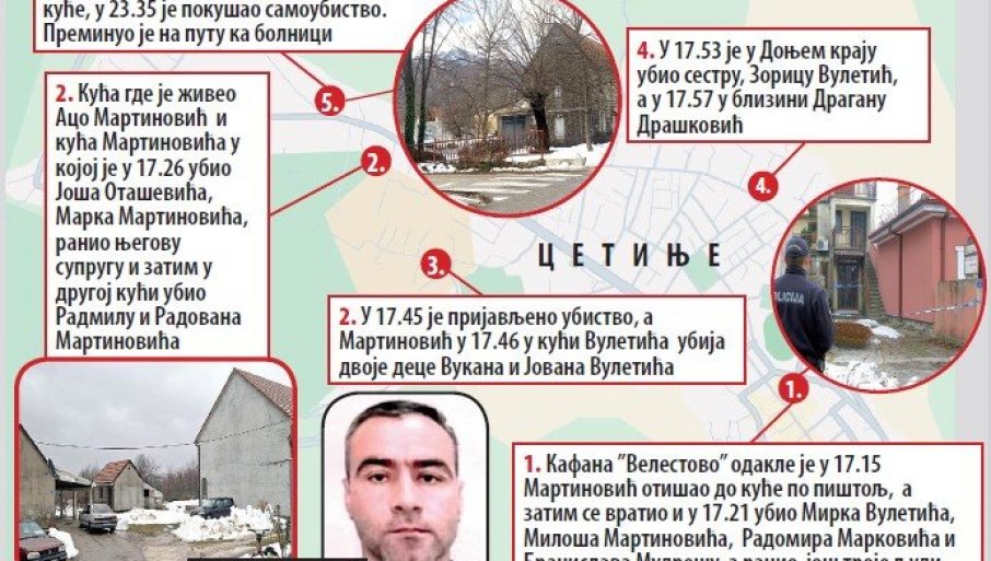 ДВЕ године требало је цетињском тужилаштву да оконча истрагу против суграђанина Аца Мартиновића (45), који је првог дана јануара починио незапамћени масакр - убио 12 и тешко ранио четири особе.