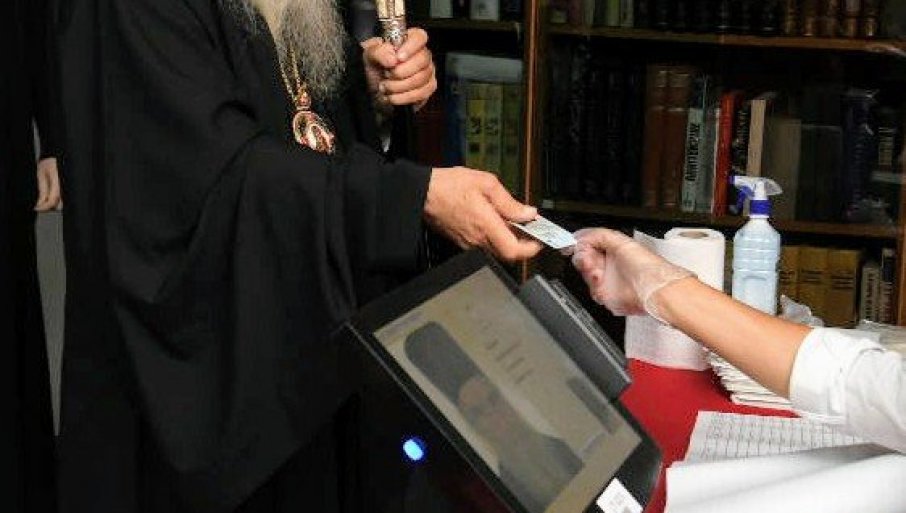 Приликом другог провлачења документа, систем је прорадио и митрополиту је уручен гласачки листић.