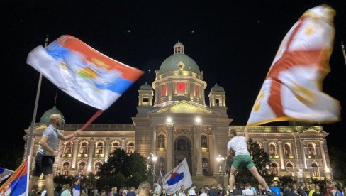 БЕОГРАД СЛАВИ ПАД МИЛА ЂУКАНОВИЋА! Вијоре се заставе и одјекује песма испред Скупштине! (ВИДЕО)