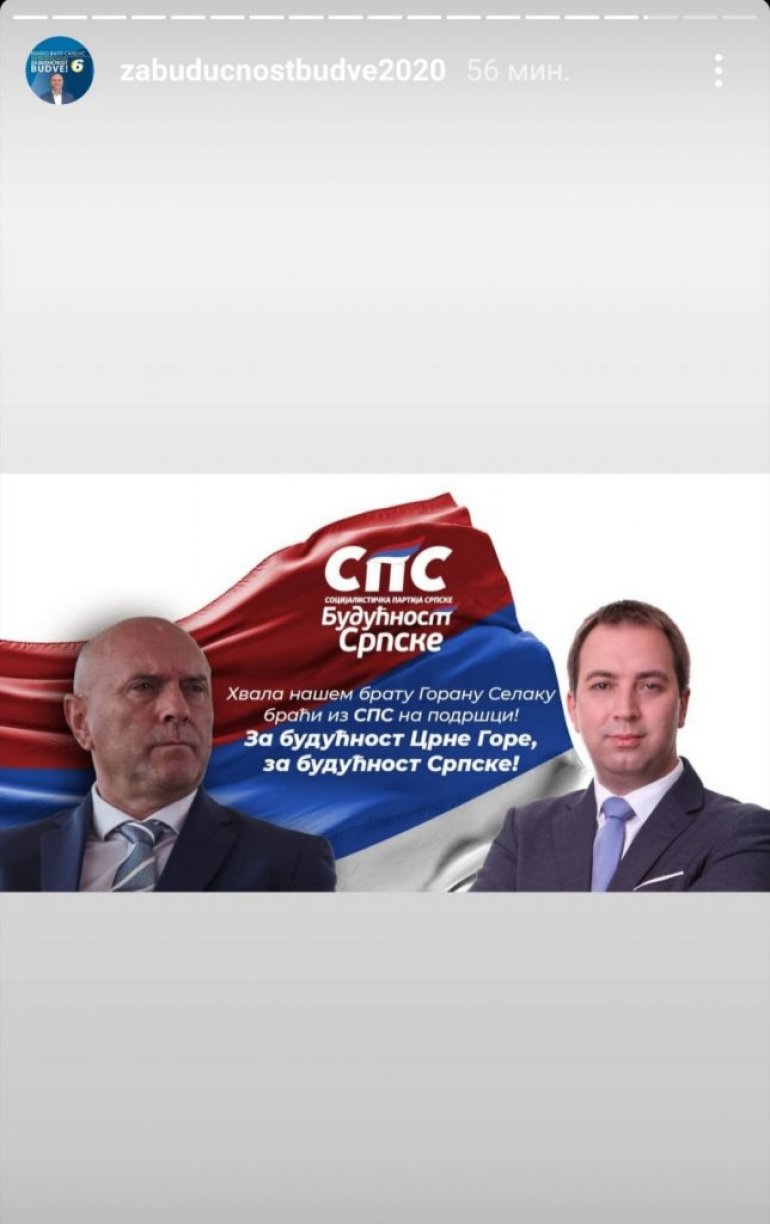 МАРКО Бато Царевић, носилац Листе "За будућност Црне Горе" у Будви захвалио је преко друштвених мрежа на подршци Горану Селаку, носиоцу листе СПС "За будућност Српске".
