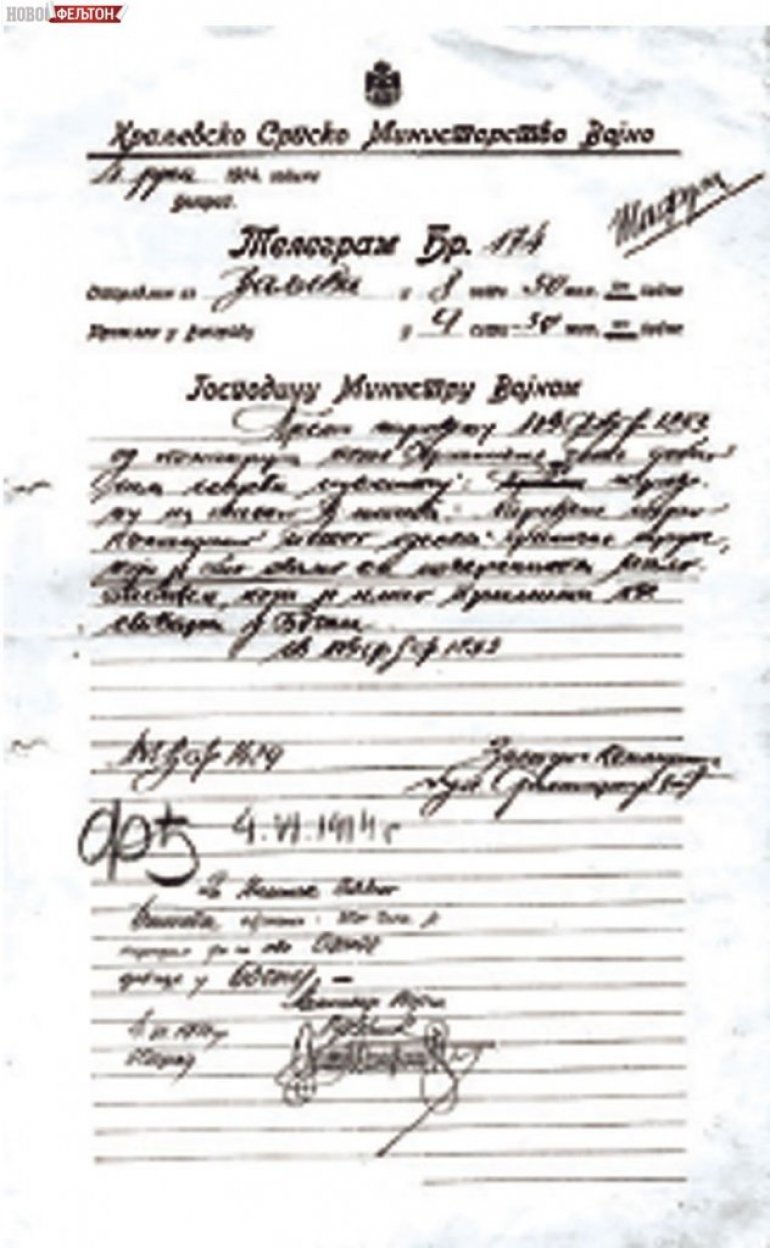 ИЗВЕШТАЈ Факсимил обавештења о преносу оружја у Босну ( 4/17. јун 1914), Фото Архива