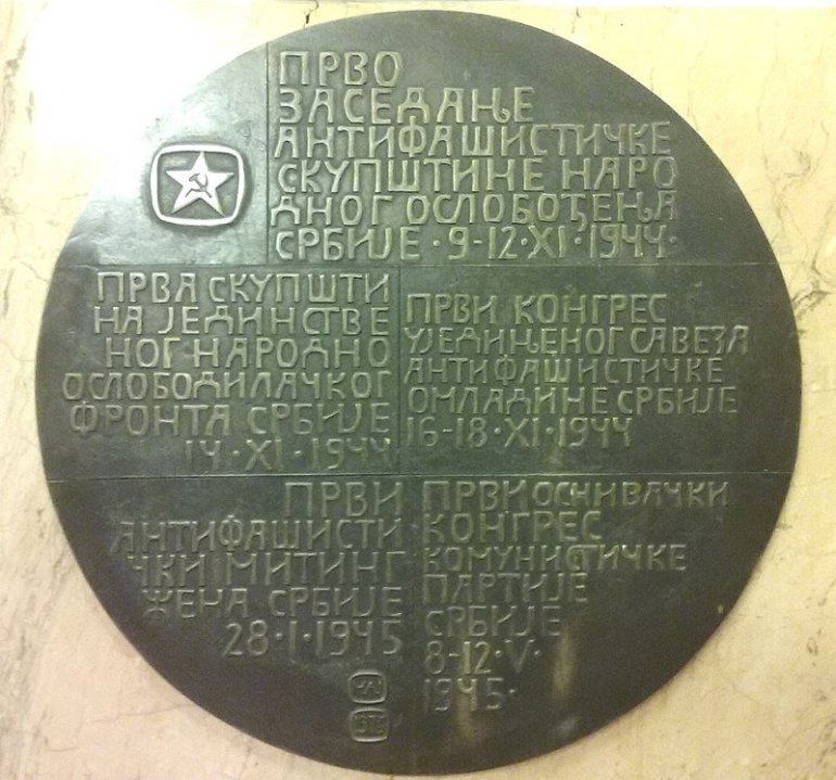 Плоча на Коларчевом универзитету у спомен на заседање АСНО Србије, Фото "Википедија"