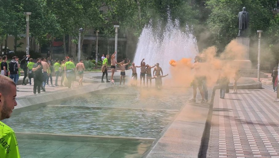 МАТУРАНТИ ШИРОМ СРБИЈЕ СЛАВЕ КРАЈ СРЕДЊОШКОЛСКОГ ОБРАЗОВАЊА: Традиционално купање у фонтани у Београду, трубачи у Пожаревцу (ФОТО)