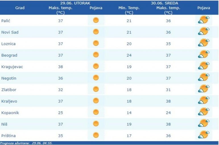 ВРЕМЕНСКА ПРОГНОЗА ЗА УТОРАК 29. ЈУН: Погледајте какво нас време очекује данас (ФОТО)