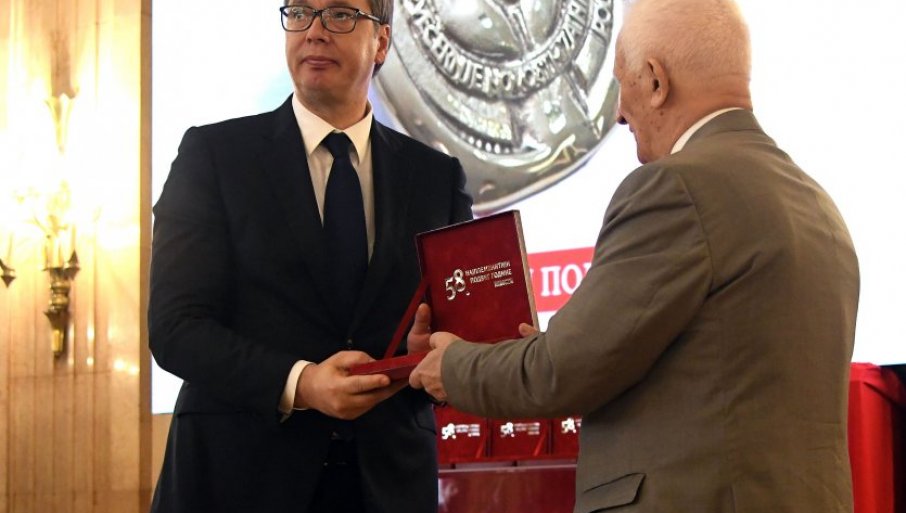 - Желим да се захвалим "Вечерњим новостима", комисији, руководству "Вечерњих новости", и да кажем да сам данас покушао да покажем како није срамота поносити се добрим делима, па чак и када представљате тако проказану државу. Хвала вам најлепше и живела Србија - рекао је Вучић на шта је поздрављен аплаузом.