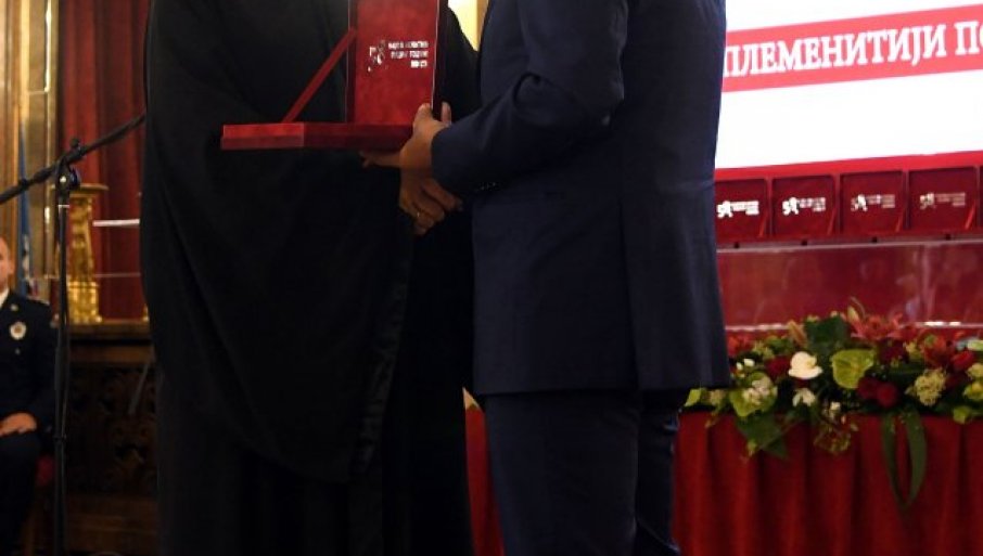 - Плакету су поготово заслужили они који су изгубили битку са пандемијом. Србија је током пандемије пружила руку и милост свима који су се обрели у невољи. Подељена Србија се ујединила у тој милости, и зато је жирију било лако да је прогласи за најплеменитију у протеклој години - рекао је Бећковић.