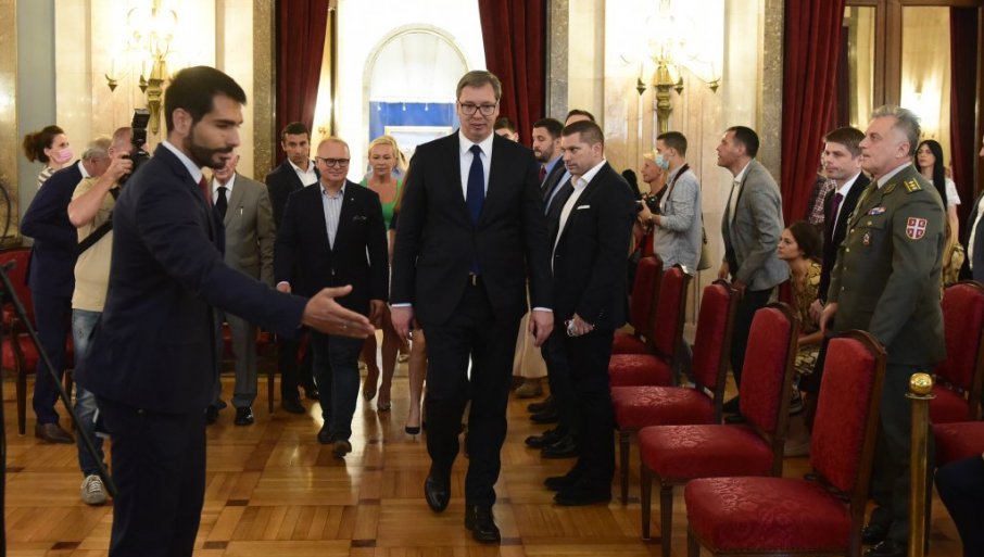 Председник је на почетку подсетио на речи Матије Бећковића "Ћераћемо се ми још", рекавши да ћемо са короном наставити да се ћерамо. Вучић је истакао да ово не доживљава као лично признање, већ као признање држави, иако је то увек најнепопуларније - одати признање држави.