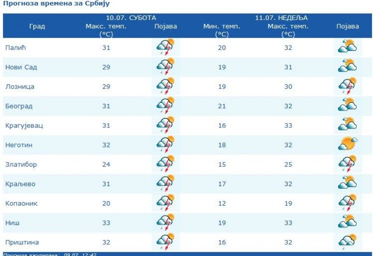 ВРЕМЕНСКА ПРОГНОЗА ЗА СУБОТУ 10. ЈУЛ: Погледајте какво нас време очекује за викенд и следеће седмице (ФОТО)