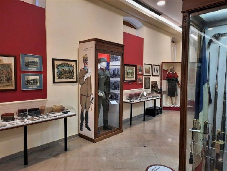 Реплика униформе српског војника, из радионице Драшка Вишића је уз заставу Србије, окружена фотографијама и документима о голготи војске која се из пепела винула у сам врх слободе.