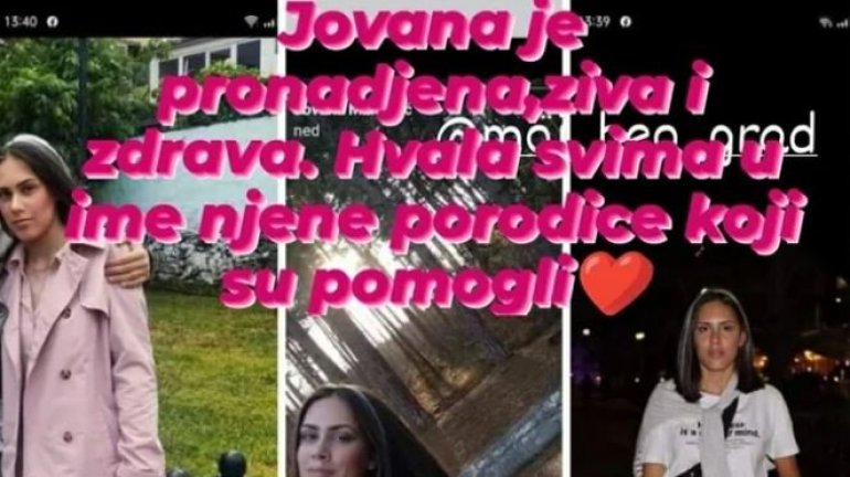 СРЕЋАН КРАЈ ПОТРАГЕ: Јована Миличевић пронађена жива и здрава - Породица неизмерно захвална