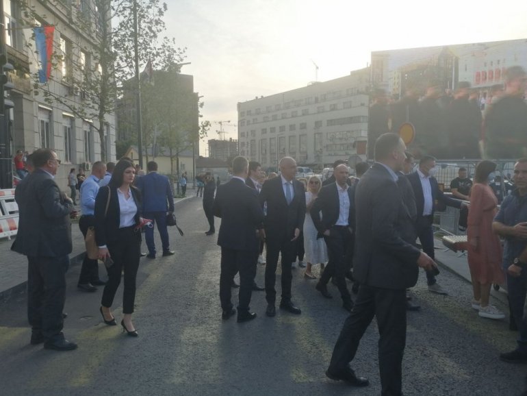 На централну манифестацију стигли су и министар финансија Синиша Мали, шеф дипломатије Никола Селаковић, градоначелник Београда Зоран Радојичић, његов заменик Горан Весић, али и владике, председници општина у Србији...