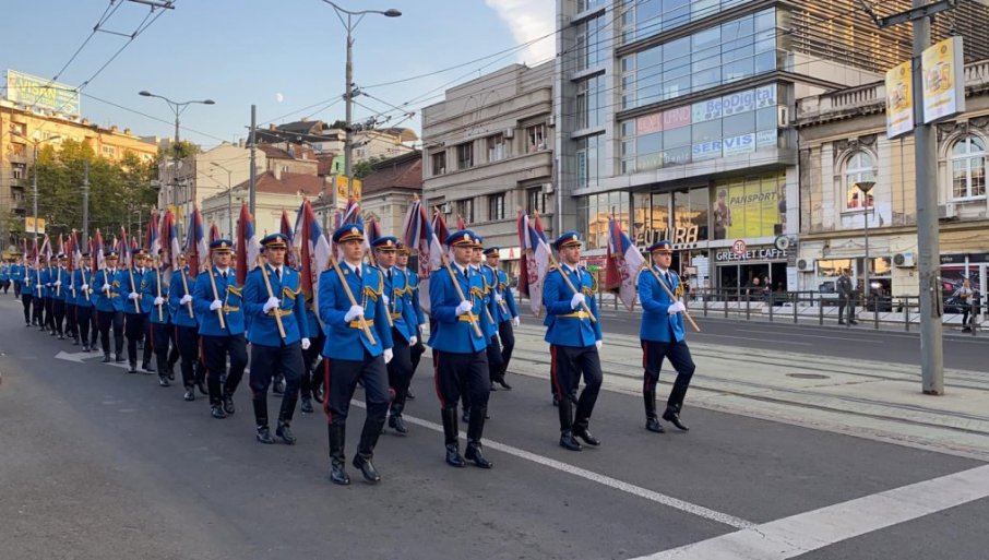 ГАРДИСТИ ПРОНЕЛИ ПОБЕДНИЧКЕ ЗАСТАВЕ КРОЗ ПРЕСТОНИЦУ: Уз "Марш на Дрину" елита српске војске маршира ка Савском тргу (ФОТО/ВИДЕО)