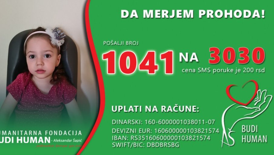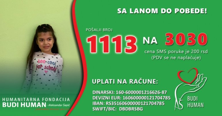 За лечење две девојчице новац се може уплатити и преко Фондације “Буди хуман” тако што ће се за Лану послати смс порука 1113, а Мерјем 1041 на број 3030.