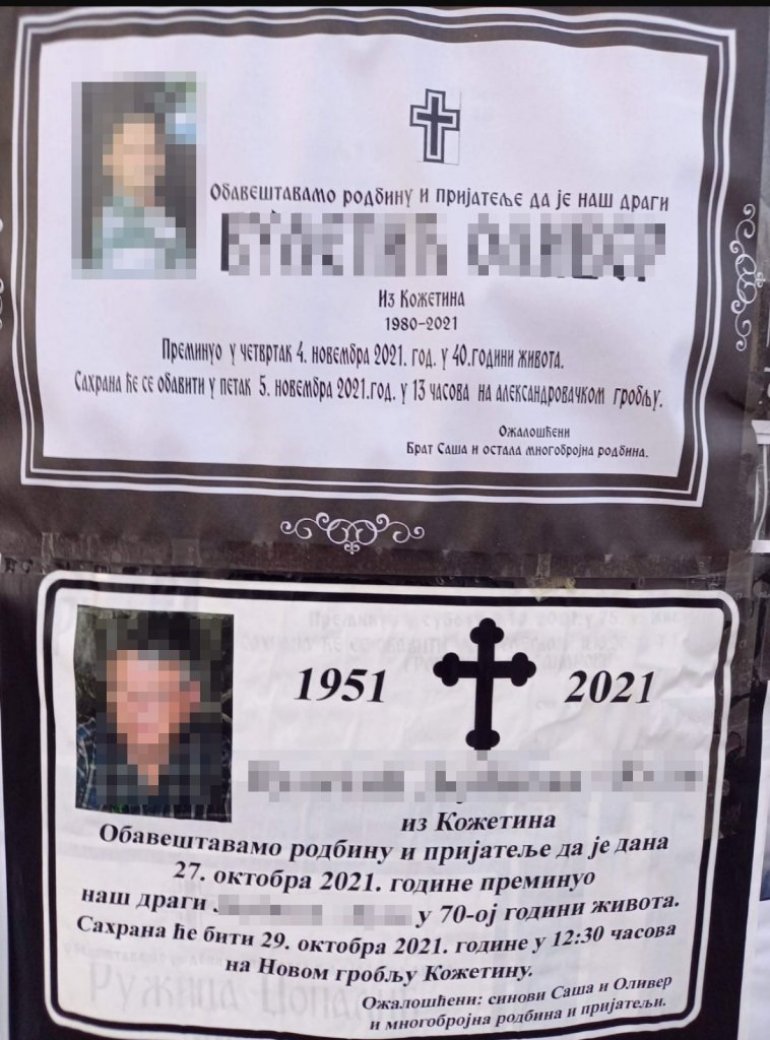 А на обе умрлице стоји и име ожалошеног сина и брата који каже да није у стању да прича.