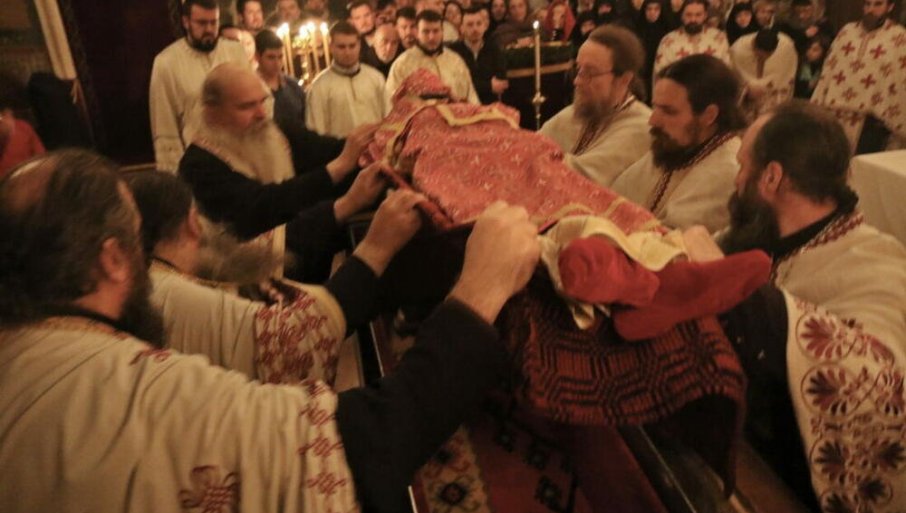 - Саслуживало је свештенство и свештеномонаштво из више епархија СПЦ у молитвеном присуству многобројног монаштва и верног народа. У току бденија, за време певања канона, владика је извршио чин пресвлачења моштију Светога краља Стефана Дечанског, чије свете мошти сада красе нове одежде које су извезле монахиње манастира Жупе код Никшића - саопштила је СПЦ.