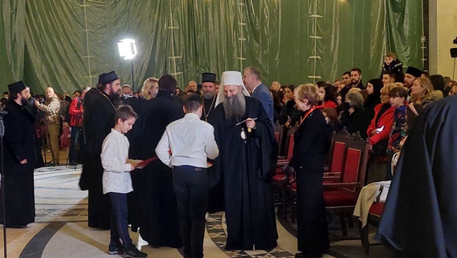 ПРЕЛЕПА СЦЕНА: Дечица везала патријарха Порфирија, он им уделио поклоне (ВИДЕО)
