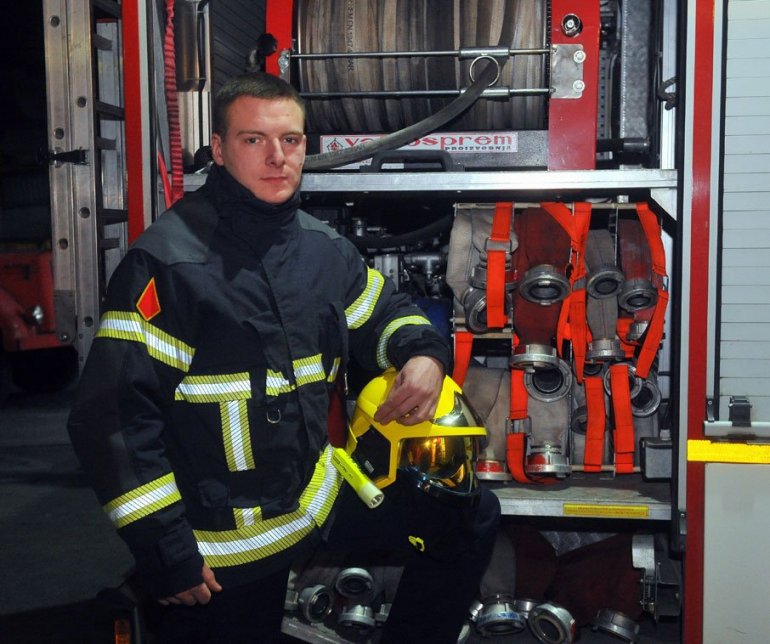 МЛАДИ ватрогасац-спасилац, распламсао је, 17. априла, ватру у срцима житеља целе наше земље, након што је током пожара у вишеспратници, у Булевару Михајла Пупина на Новом Београду, са 15 спрата спасао једногодишњег дечака Вука Ивића и неповређеног га предао мајци.