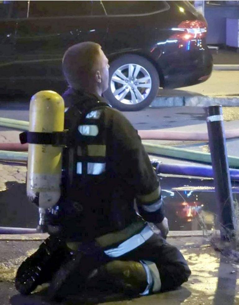 - Ватрогасац који клечи на земљи после 13 сати бробе са пламеном и гледа у оно што је остало од тржног центра, то је призор који је обележио пожар у Блоку 70 - писало је.