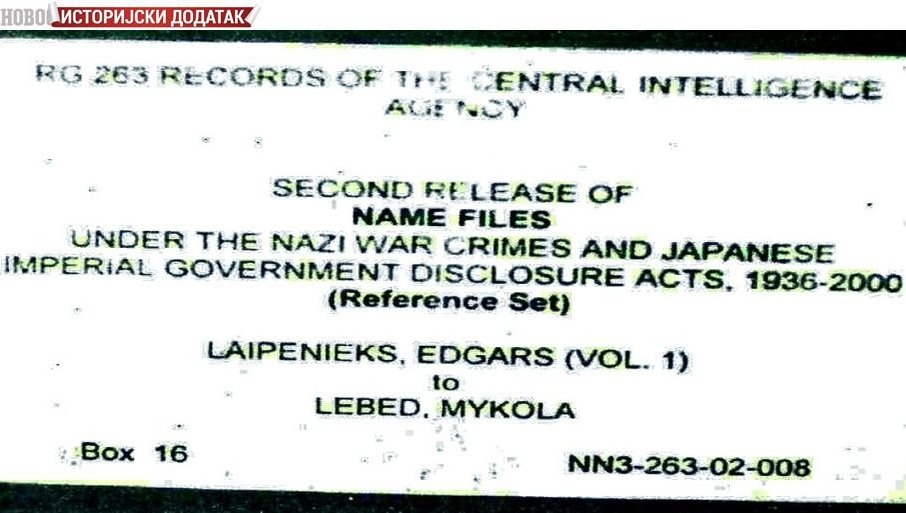 Кутија број 16 у Америчком државном архиву у којој се налази досије Миколе Лебеда