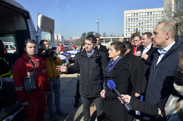 Ана Брнабић је видела и возило које је директор београдског Завода за хитну медицинску помоћ Горан Чолаковић представио као "мини болницу", у ком се налазе и респиратори, дефибрилатори, уређаји за аутоматску дезинфекцију... Докторка која је разговарала са премијерком рекла је да је то возило "сан снова" сваког радника Хитне помоћи.