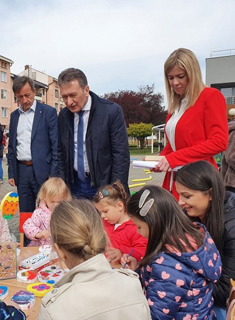 И, док је директор вртића Младен Стевановић поручио да Ускрс подсећа колико су вера, љубав и нада значајне за све људе, начелник Општине Василије Перић је најпре организовао пријем за представнике ове установе, а потом - са својом заменицом Вањом Зекић и председником СО Ђоком Симићем - посетио радионицу, не скривајући задовољство што је манифестација на градском тргу окупила велики број учесника.
