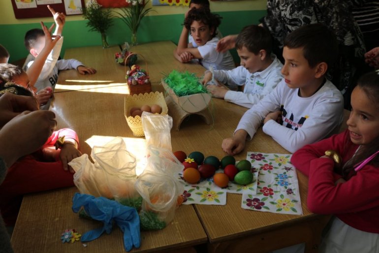 После приредбе коју су ђаци припремили са учитељицама Данијелом Којић и Кристином Пејчић, вероучитељем Марком Јоргићем и наставницом енглеског језика Данијелом Блажевски, током радионице се са учесницима разговарало о значају празновања Ускрса, те симболици и обичајима који прате овај празник. И, у добром расположењу, најмлађи су најпре фарбали јаја примењујући технику са пиринчем и креп-папиром, а затим се почастили разним ђаконијама...