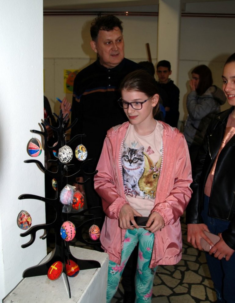 - За разлику од најчешћег вида шарања јаја воском, или једноставног лепљења налепница, овде су се ђаци потрудили да на најбољи начин искажу сопствени таленат и креативност, водећи се ликовним интерпретацијама културно-религијског наслеђа...