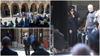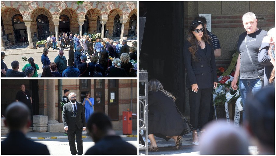 Људи су већ почели да се окупљају испред капеле. Водитељка Николина Пишек са ћерком је стигла на гробље, а стигао је и отац Видоја Ристовића Миша Гроф.