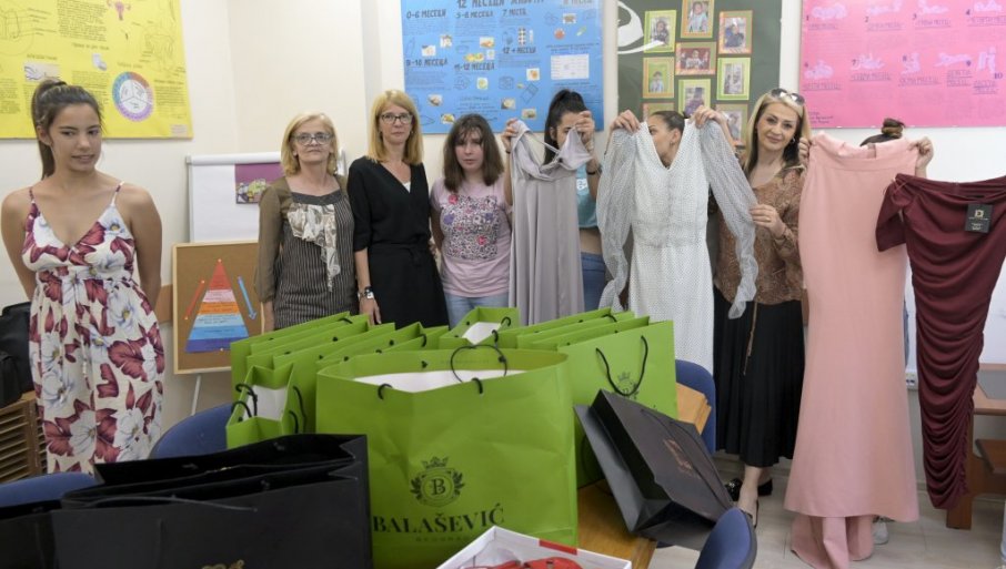"НОВОСТИ" ОБРАДОВАЛЕ ШТИЋЕНИЦЕ ДОМА: У сарадњи са модним кућама "Балашевић", "Дилајн" и "Опозит" 15 матуранткиња добило свечане тоалете