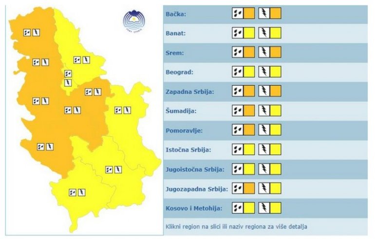 Наранџаста и жута, то су боје метеоаларма који је на снази ових дана у Србији. Киша, необично крупан град, грмљавина и олујни ветар.