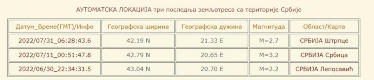ЗЕМЉОТРЕС јачине 3,2 степена Рихтерове скале погодио је данас Северну Македонију, а потрес се осетио и на Косову и Метохији.