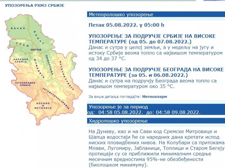 НАЈНОВИЈЕ УПОЗОРЕЊЕ РХМЗ-а: У Србији веома високе температуре