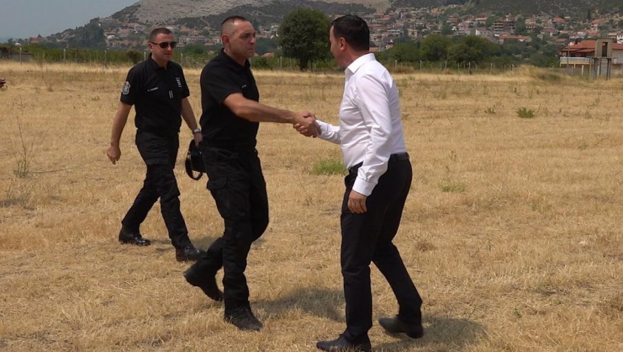 МИНИСТАР унутрашњих послова Александар Вулин, са директором Републичке управе цивилне заштите Републике Српске Миланом Новитовићем и градоначелником Требиња Мирком Ђурићем, обишао је припаднике Хеликоптерске јединице МУП-а Србије који су ангажовани на гашењу пожара у околини Требиња на потезу Скочи грм - Баре - Девојачке греде, који се услед високих температура и јаког ветра брзо шири.
