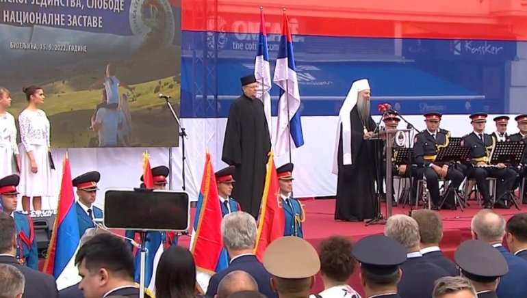 НАША ЈЕ ЗАСТАВА ВИДЉИВИ ЗНАК НАШЕГ ЈЕДИНСТВА: Патријарх Порфирије се обратио народу у Бијељини