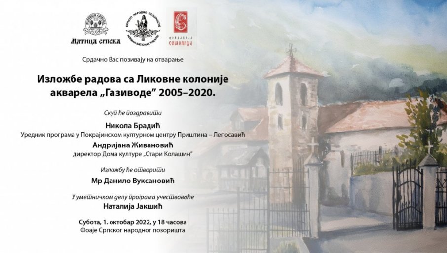 У ОРГАНИЗАЦИЈИ Матице српске и Фондације „Симонида“ вечерас у фоајеу Српског народног позоришта у Новом Саду биће отворена изложба радова са Ликовне колоније акварела „Газиводе“ 2005-2020“.