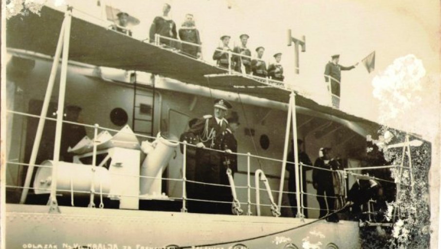 Краљ Александар на разарачу "Дубровник" пред полазак у Марсељ Фото Војни музеј