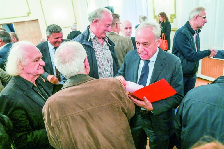 Милорад Вучелић, главни уредник "Новости" окружен гостима на промоцији