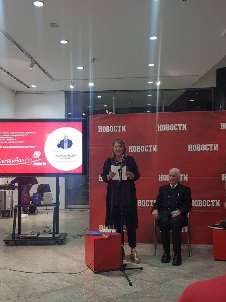 АКАДЕМИК Матија Бећковић поклонио је дивно вече љубитељима његових стихова. У до последњег места испуњеној Галерији "Прогрес" бард писане и усмене речи говорио је своју поезију из књига "100 мојих портрета", "Мојих 80" и "Онамо намо", које је објавила Компанија "Новости".