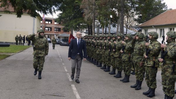 – Пуно је срце сваког од нас када видите да смо наследници славне историје, традиције, па и садашњости. Пре свега смо обавезни према будућности, према онима који долазе после нас и посебно смо загледани у околности које нас окружују и, тим пре, Четврта бригада Копнене војске има озбиљну, велику одговорност гледајући у њену зону деловања, амбијент у коме ради и окружењу. Ја сам сигуран да ће сви припадници Војске Србије, сви припадници Копнене војске, наравно и саме Четврте бригаде, бити увек на висини задатка, да ће испунити све оне обавезе и очекивања у циљу заштите суверенитета Републике Србије и заштите сваког грађанина наше отаџбине – рекао је министар одбране.