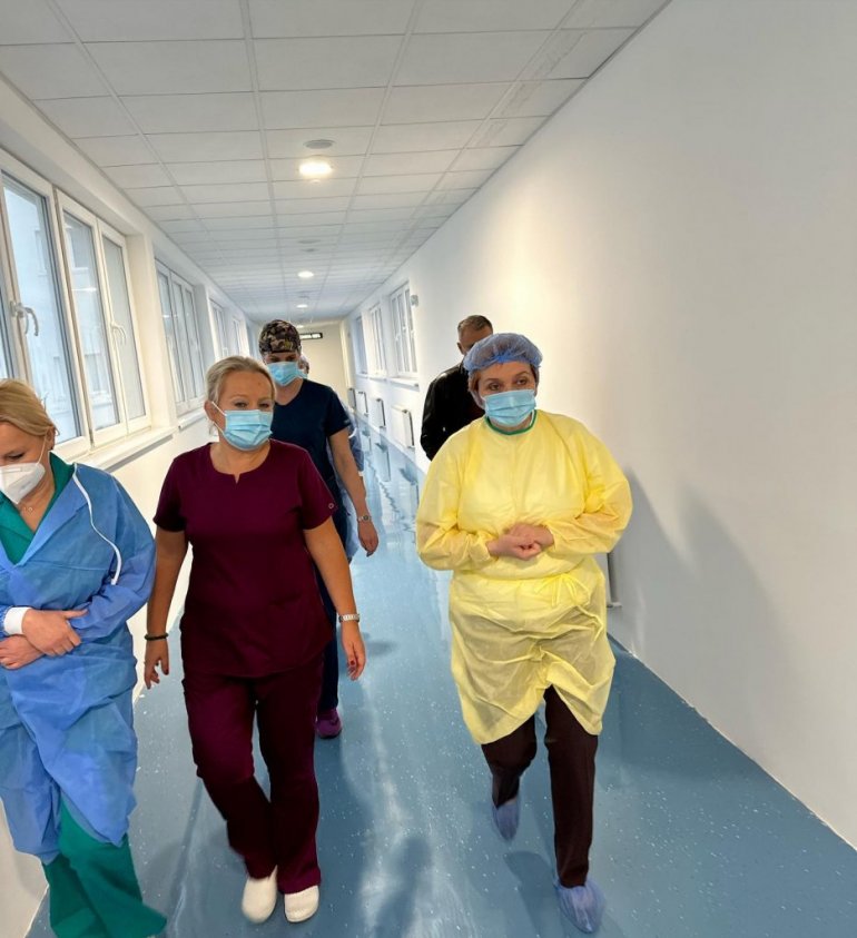 - Желела сам да прва моја радна посета буде Ковид болници у Батајници. Моје колеге поднеле су огроман терет. Пуно тешких дана, ноћи и тешких одлука је за њима. Сваког дана су се борили за сваког пацијента. Много наших колега је изгубило битку током ковида. Сва слава и захвалност припада њима и свим нашим колегама који су се претходне две године борили са овим вирусом у свим болницама и домовима здравља широм Србије - истакла је министарка.