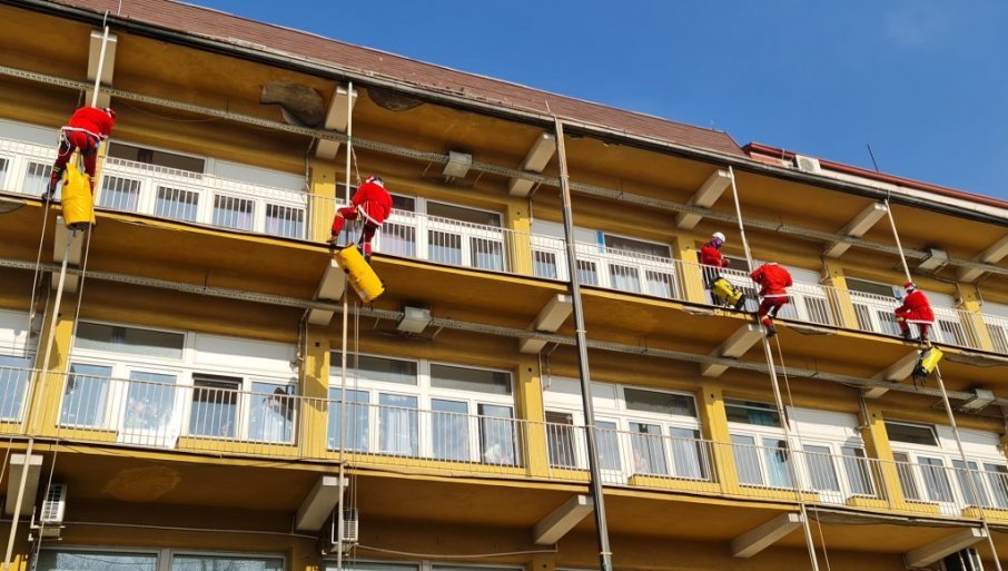 ПРИПАДНИЦИ ГОРСКЕ СЛУЖБЕ КАО ДЕДА МРАЗОВИ: Спуштали се са крова Болнице и обрадовали малишане (ФОТО/ВИДЕО)