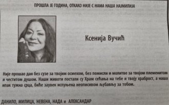 ПРОШЛО је годину дана од смрти новинарке Ксеније Вучић, а породица је објавила читуљу.